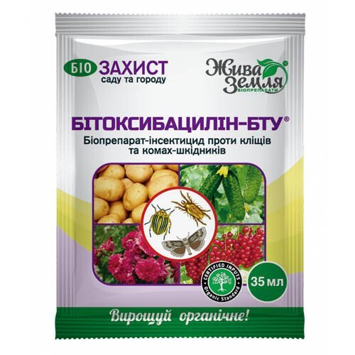 Бітоксибацилін являється концентратом біоінсектициду кишкового типу, що застосовується для обробки овочевих та плодово-ягідних культур від різноманітних видів шкідливих комах. Активним компонентом даного біологічного засобу служать бактерії Bacillus thuringiensis та їх метаболіти, які, потрапивши в організм комах разом з рослинними частинами, що поїдаються, впливають на нервову систему, викликаючи параліч і подальшу загибель. Найбільш висока ефективність біопрепарату Бітоксибацилін-БТУ спостерігається при обробці рослин на початку стадій розвитку шкідників (1-3 стадії – личинки різного віку, гусениці). Засіб виявляє активність навіть в умовах несприятливої погоди та не сприяє розвитку стійкості до препарату у комах-шкідників. Продукт безпечний для рослин та навколишнього середовища. Біопрепарат не накопичується у ґрунті та рослинах, що забезпечує можливість збирання врожаю через п’ять днів після проведення обробки. Бітоксибацилін надає ефективний захист при обробці огірків закритого ґрунту, капусти, картоплі, томатів, баклажанів, квітів, всіх видів буряків, соняшнику, люцерни, смородини, малини, аґрусу, суниці, винограду, яблуні, сливи, абрикосу, черешні, груші, вишні від кліщів, баштанної попелиці, білянки, капустяної молі, колорадського жука, вогнівки, лучного метелика, совок, листовійки, пильщика, гронової листовійки, яблуневої та плодової молі, американського білого метелика, золотогузки.