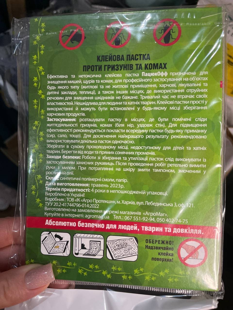 пастка безпечна для домашніх тварин і людини — не містить отруйних речовин і не виділяє запаху,