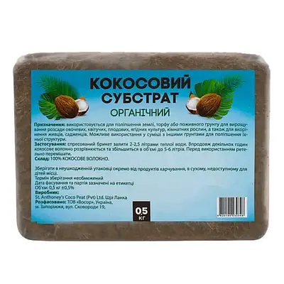 Кокосовий субстрат в брикеті 0,5кг