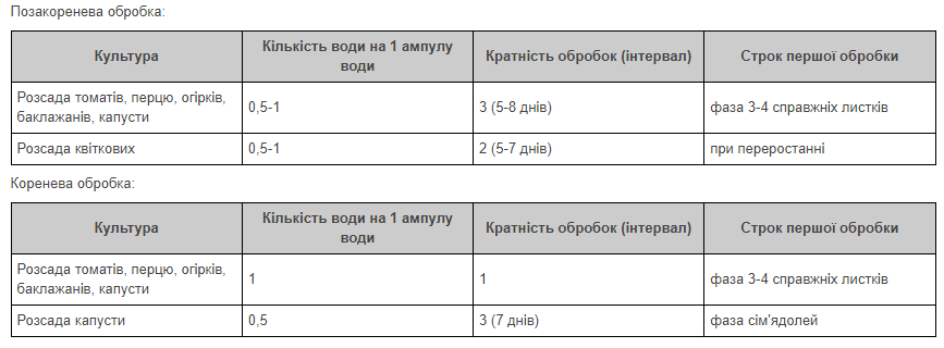 Ефективність: запобігає росту і витягуванню головного стебла, переростанню розсади, забезпечує розвиток кореневої системи, потовщення стебла та збільшення розмірів листя.