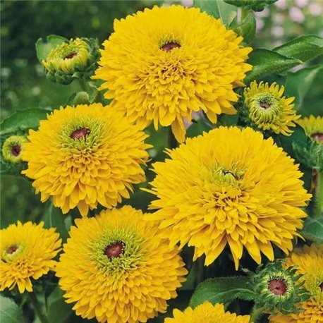 Рудбекія густомахрова Майя — яскрава, декоративна однорічна рослина з великими золотисто-жовтими квітками густомахрової форми. Квіти мають щільні пелюстки й темну серединку, що створює ефектний контраст. Цвіте рясно та тривало, з липня до перших заморозків.