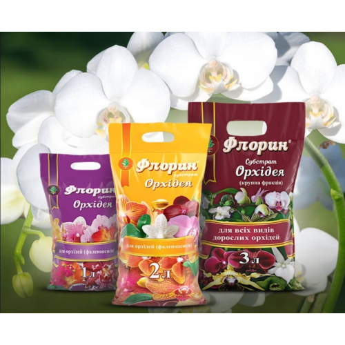 Готовий до використання субстрат Флорин Орхідея, складається з соснової кори, деревного вугілля, піску, кокосового волокна та сфагнума, з доповненням антисептика, перліту та мінеральних добрив. Він підходить для пересадки та вирощування всіх типів орхідей. Дана поживна суміш створює ідеальні умови для активного та здорового росту орхідей, зменшує стрес при пересадці та сприяє формуванню потужної кореневої системи. Середня фракція субстрату полегшує доступ вологи та повітря до коренів, знижуючи ймовірність кореневих гнилей та чорної ніжки, тоді як антисептик у складі субстрату допомагає запобігти росту шкідливих мікроорганізмів. Мінеральні добрива, що містяться в субстраті, забезпечують орхідеям збалансоване живлення, задовольняючи всі потреби в мінералах для здорового росту і розвитку. Перліт і мох-сфагнум добре утримують вологу в грунті, забезпечуючи кореневу систему вологою в періоди між поливами. Рівень кислотності даного субстрату знаходиться в діапазоні pH 6.0-6.5, що є оптимальним для більшості видів орхідей. Оптимально підібраний склад субстрату сприяє покращенню декоративних якостей орхідей, забезпечує їх рясне та тривале цвітіння, збільшує розміри кольорів та насичує їх яскравими фарбами. Субстрат Флорин забезпечує сприятливі комфортні умови для росту та розвитку орхідей: фаленопсису, камбрії, цимбідіуму, онцидіумів, дендробіуму, сидерії, мілтонії, японики та інших.
